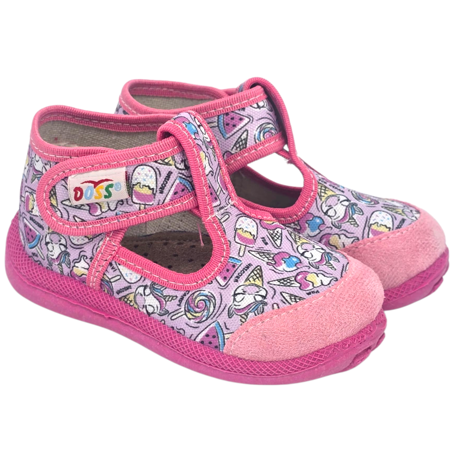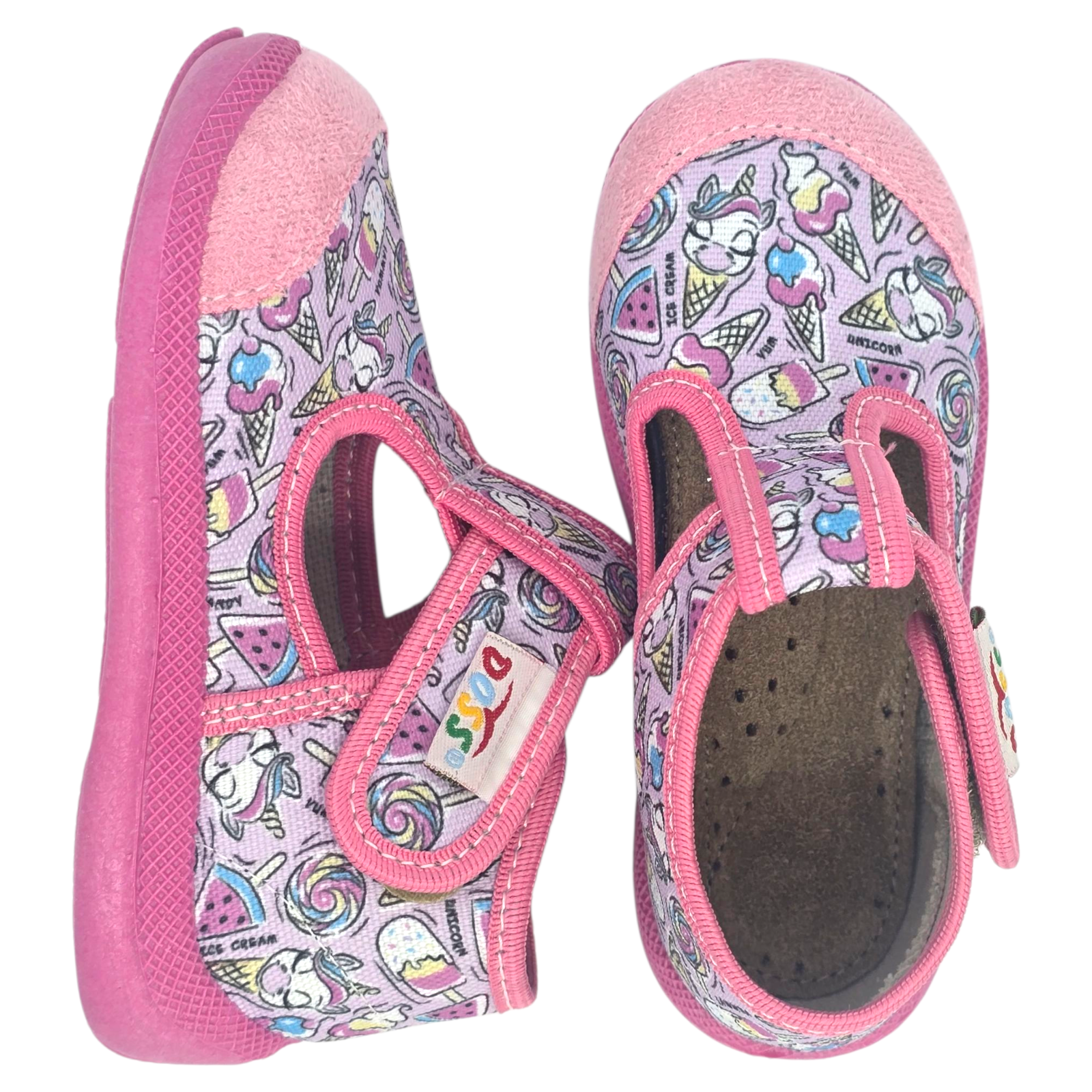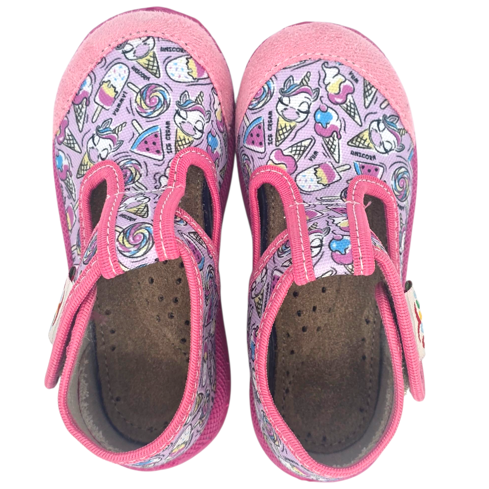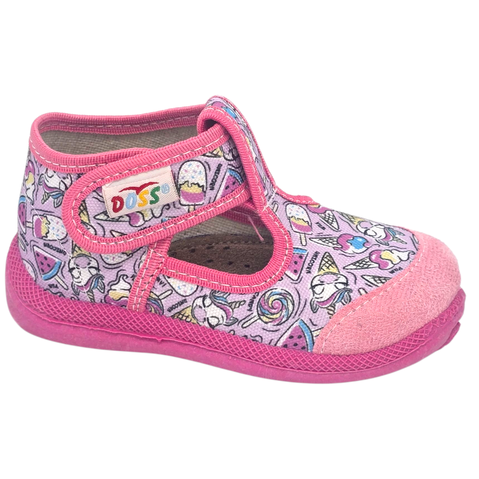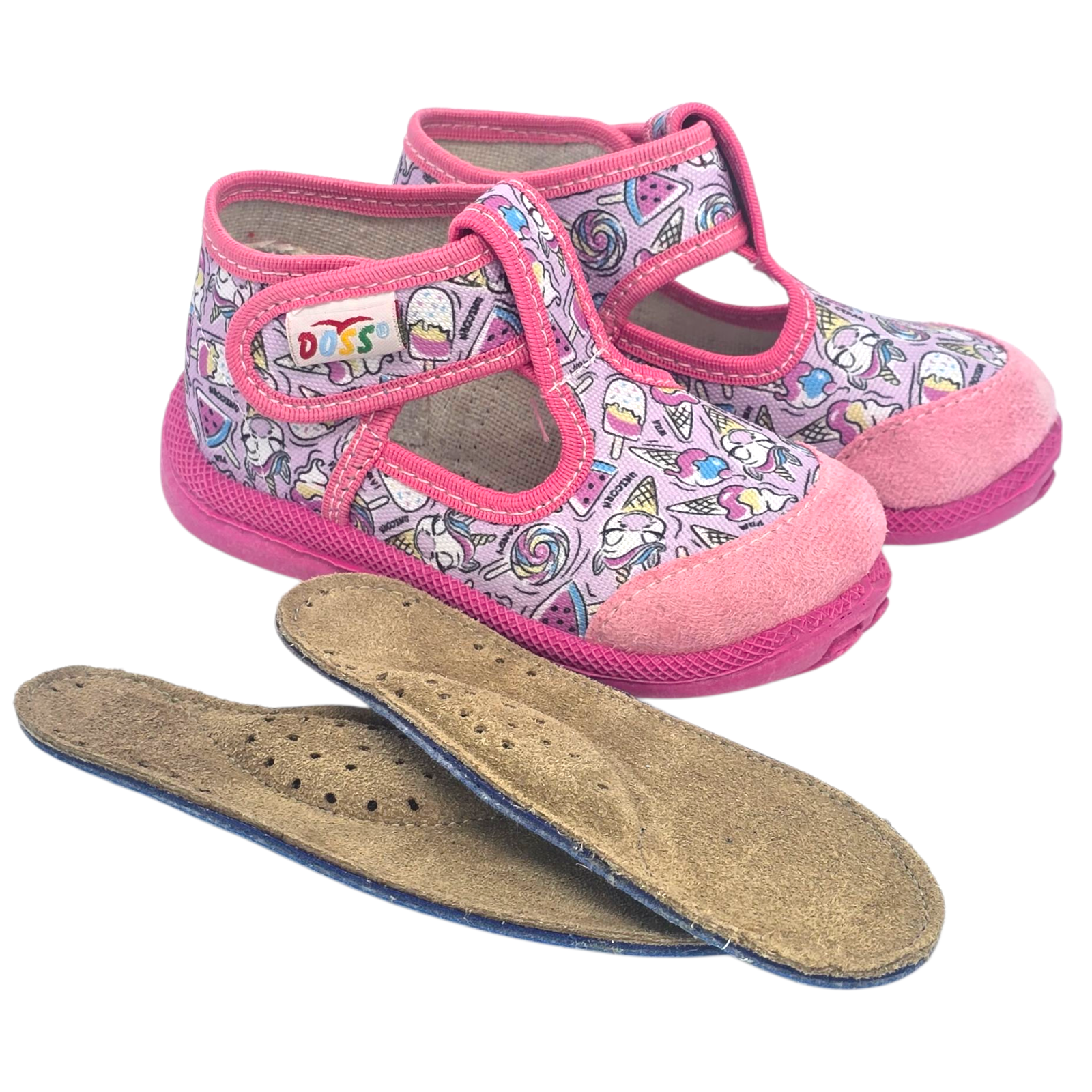 Design: cu bareta reglabila, partea superioara neperforata, cu imprimeu (tip floricele/fluturasi/colorat), cu taloneta usor detasabila