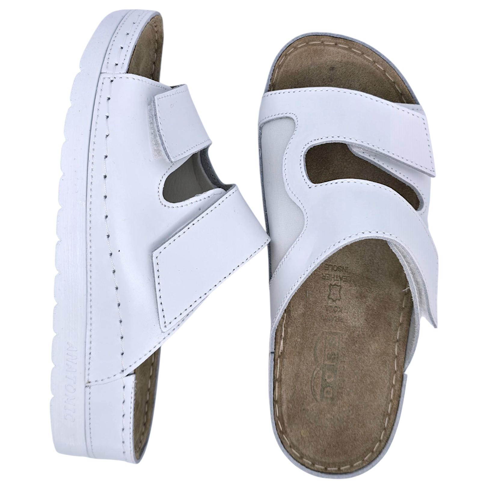Papucii cu talpa ortopedica marca Doss model 514 de culoare alba este destinat persoanelor care cauta un echilibru perfect intre confort si calitate. Realizati dupa forma anatomica a piciorului acesti saboti ofera suport optim picioarelor obosite si solicitate, fiind o solutie ideala, atat in cadrul activitatilor profesionale, cat si in cele de zi cu zi.