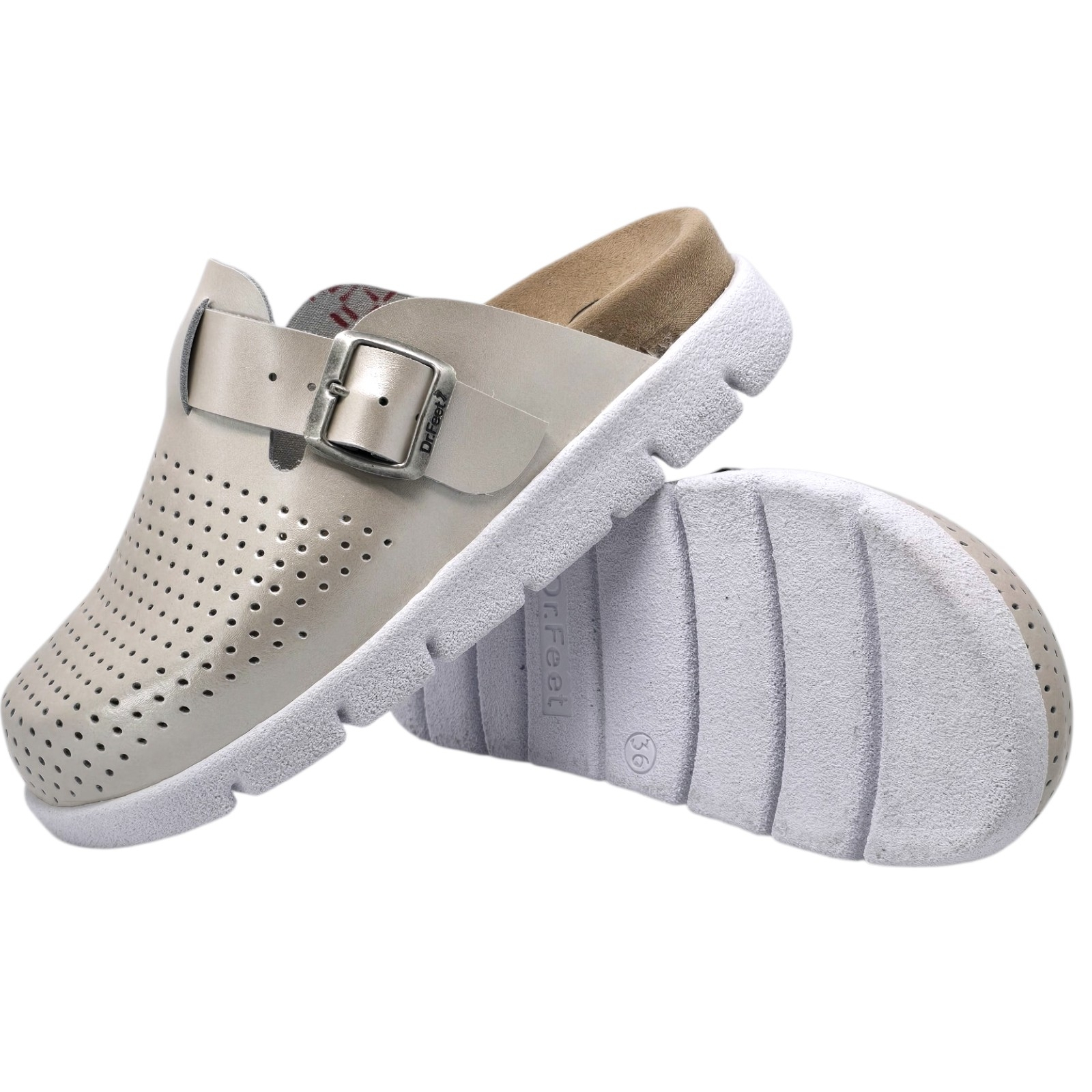 Sabotii marca Dr.Feet modelul 22100 de culoare a sampaniei este o combinatie perfecte intre ultimile tendinte al modei cu confortul sporit, oferindu-ți combinația perfectă de stil și confort atât acasă, la serviciu, cât și in cele mai aglomerate zile din viata ta. Fiind lucrati din piele naturala italiana de cea mai buna calitate, combina luxul, eleganta si durabilitate.