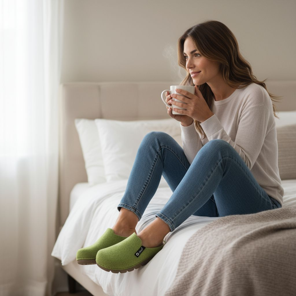 Papuci de lână marca Dr.Feet modelul 1107 de culoare verde este o combinatie perfecte intre ultimile tendinte al modei cu confortul sporit, oferindu-ți combinația perfectă de stil și confort la tine acasă. Colecția noastră de iarnă este realizată cu multă pasiune din material de lână de cea mai bună calitate, combinând luxul, eleganța și durabilitatea.