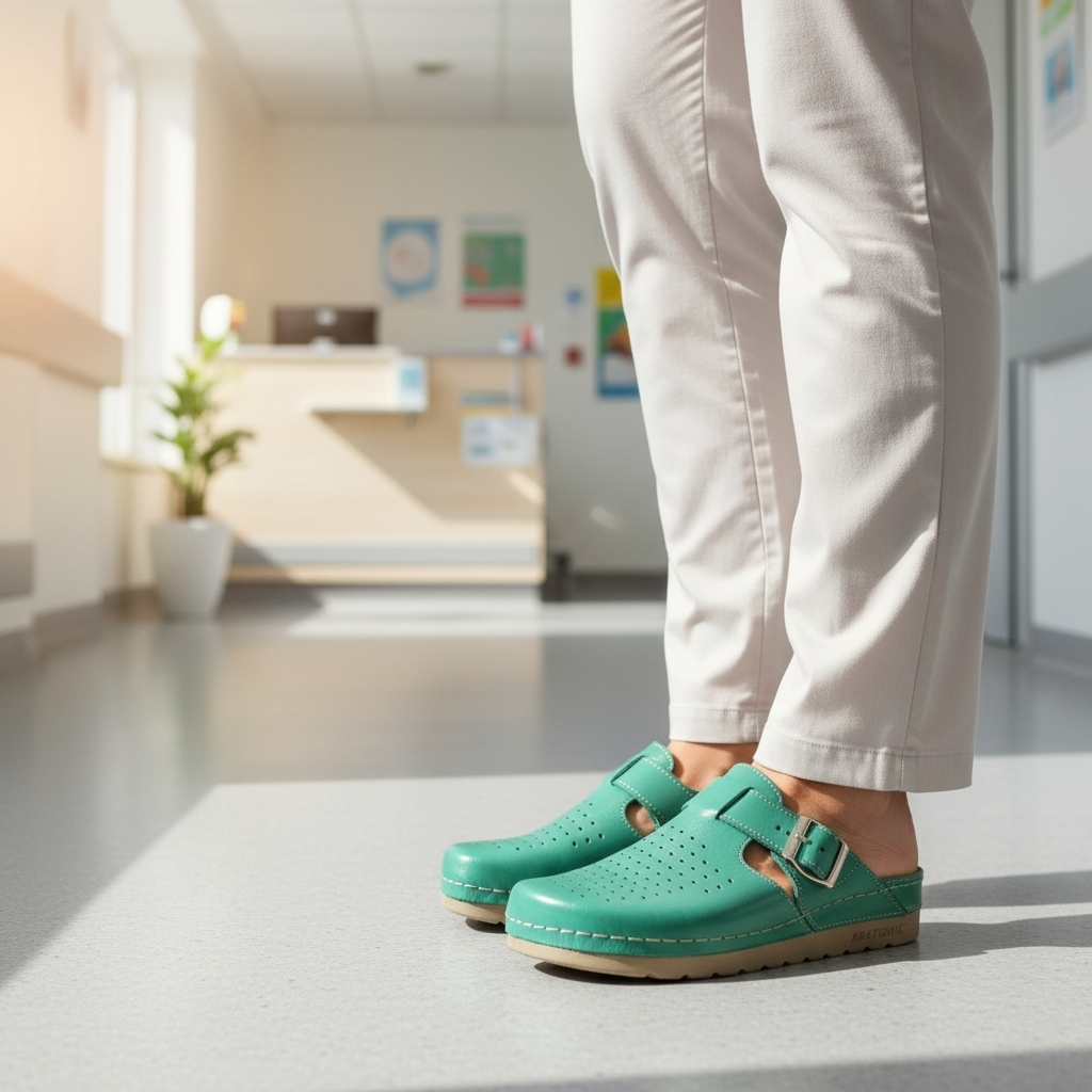 Sabotii medicali marca Doss model 525 de culoare turcoaz verde este destinat persoanelor care cauta un echilibru perfect intre confort si calitate. Realizati dupa forma anatomica a piciorului acesti saboti ofera suport optim picioarelor obosite si solicitate, fiind o solutie ideala, atat in cadrul activitatilor profesionale, cat si in cele de zi cu zi.