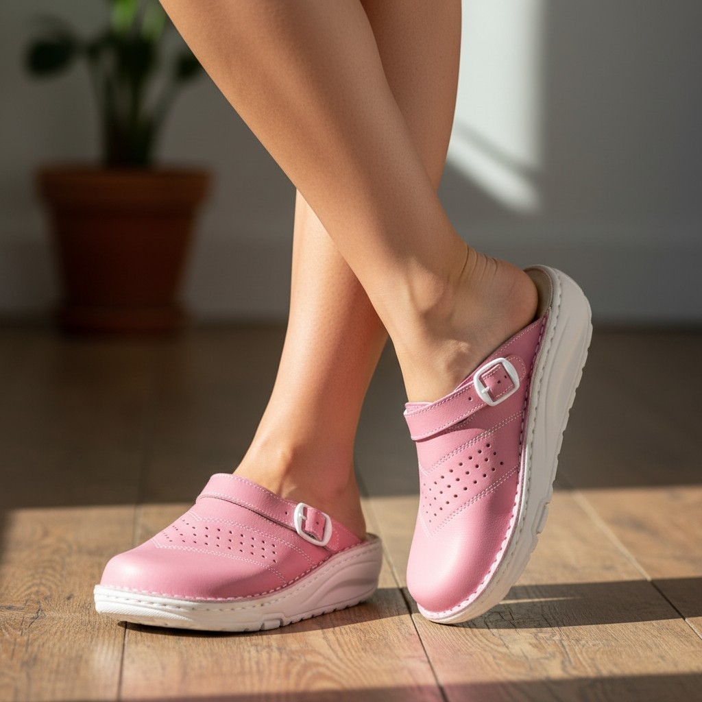 Fiecare model este realizat din piele foarte fina, flexibila, moale, foarte placuta la atingere, de cea mai buna calitate, este considerat un material de generatie nou, datorita acestui caracteristic, piciorul respire in saboti, nu capata miros neplacut si este anti-alergen.