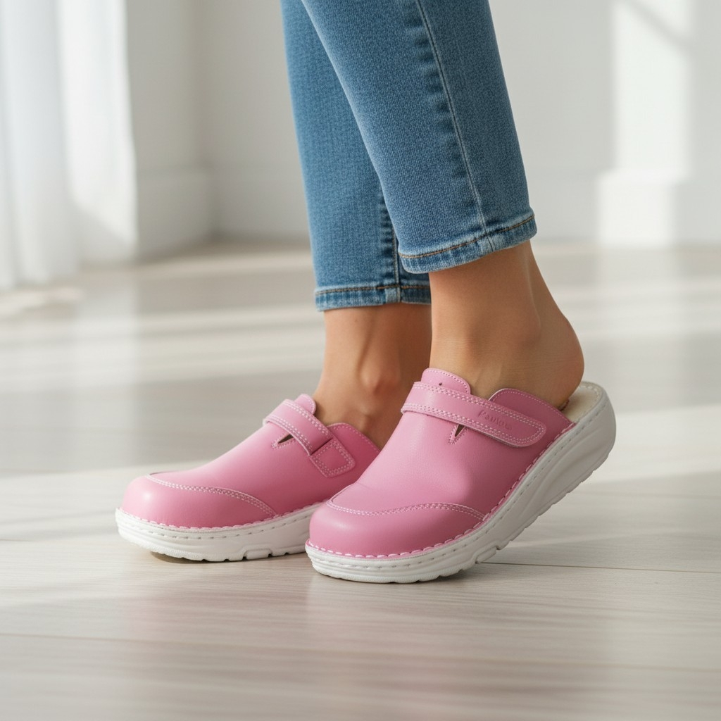 Fiecare model este realizat din piele foarte fina, flexibila, moale, foarte placuta la atingere, de cea mai buna calitate, este considerat un material de generatie nou, datorita acestui caracteristic, piciorul respire in saboti, nu capata miros neplacut si este anti-alergen.