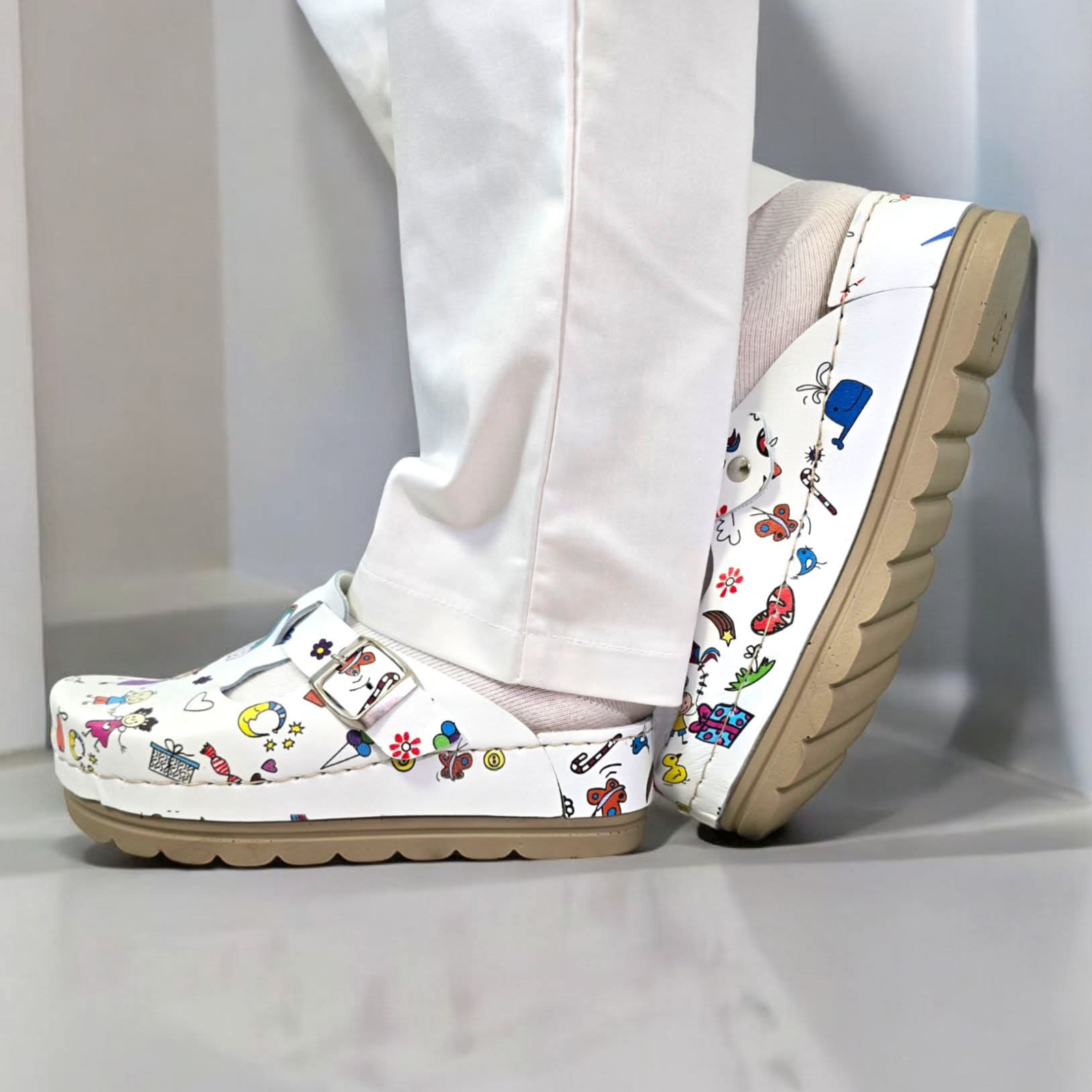 Design: cu bareta reglabila, partea superioara neperforata, cu imprimeu (tip floricele/fluturasi/colorat)